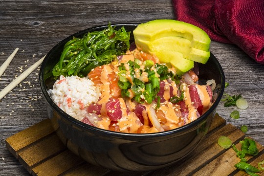 Sushi Bowls with Raw Tuna, Cooked Shrimp, Varlaks Salmon